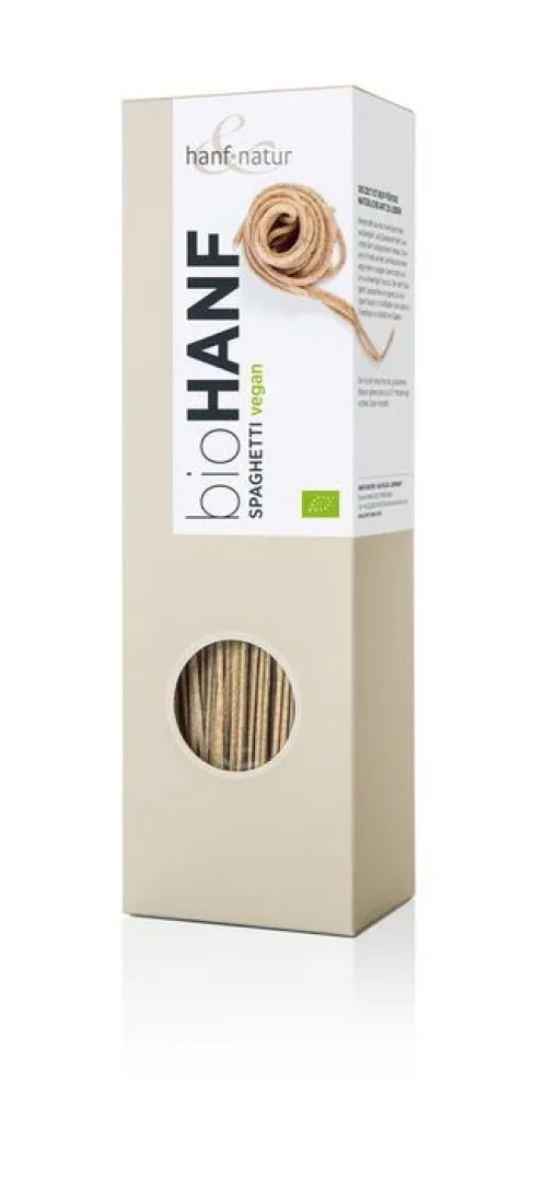 Vollwertige Spaghetti aus hochwertigem Hartweizen und Speisehanfmehl. Kombiniert mit feinen Saucen eine Bereicherung für jeden Speiseplan. Nicht nur für Erwachsene, sondern auch für Kinder eine geschmackliche Abwechslung. Mit einem hohen Gehalt an Eiweiß, Mineral- und Ballaststoffen. Hergestellt aus hochwertigem Hartweizen und Speisehanfmehl