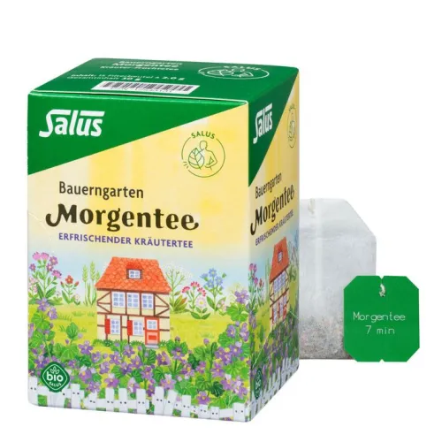 Der Morgentee Kräutertee von Salus schmeckt durch seine klassische Bauerngarten Kräuter Zusammensetzung jung und alt.