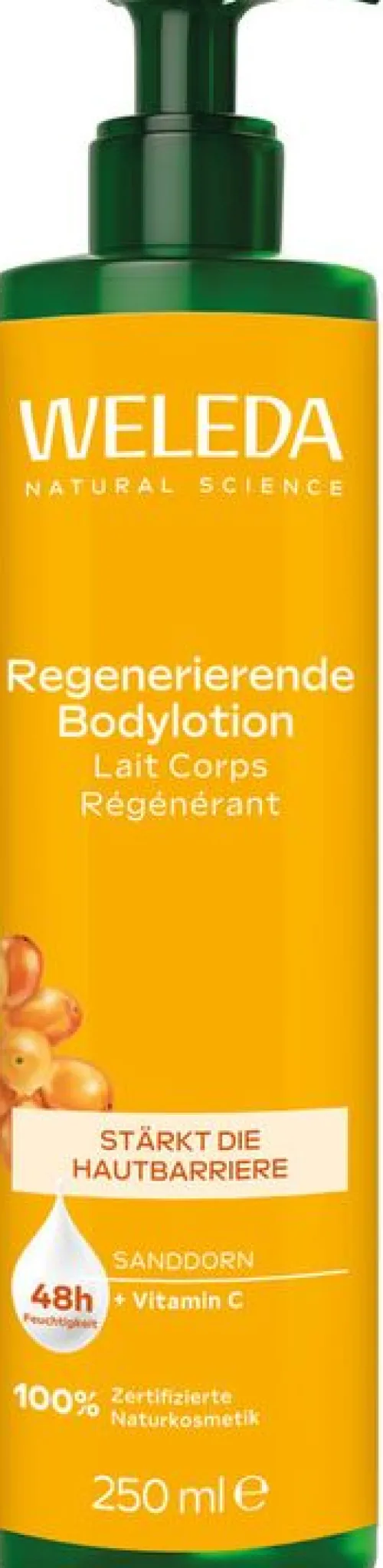 Die Weleda Regenerierende Bodylotion vereint hochwertige Bio-Pflanzenöle wie Argan-, Sanddorn- und Sesamöl mit schützender Kakaobutter zu einer nährenden Körperpflege, die die Haut intensiv pflegt und geschmeidig hält. Auszüge aus Malve und Rosmarinblättern ergänzen die Rezeptur mit natürlichen Pflanzenstoffen, während die enthaltenen ätherischen Öle einen dezent sinnlichen Duft verleihen.