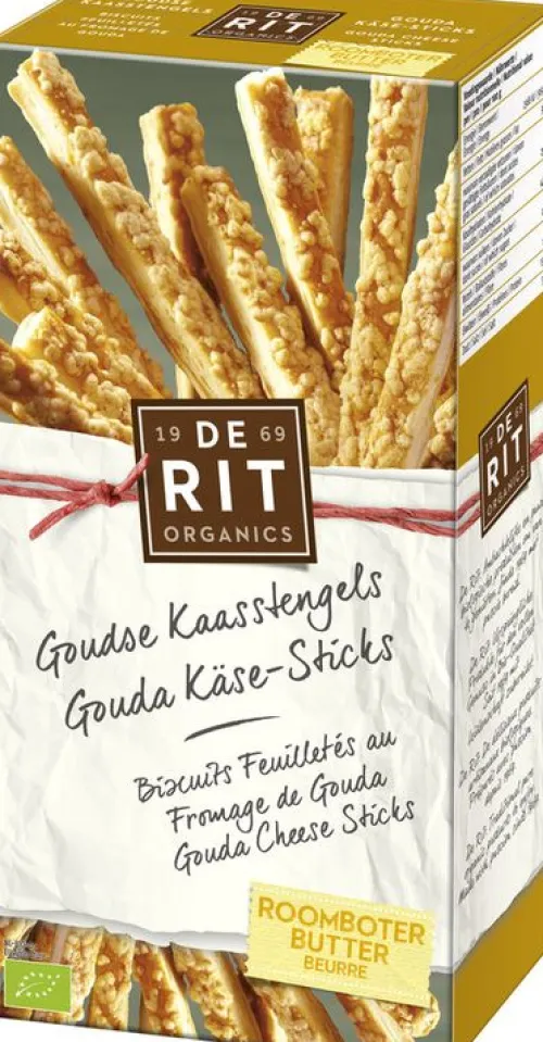 Knusprige Knabberstangen mit Butter und reichlich Gouda von De Rit – der feine Blätterteig, goldgelb gebacken und der herzhafte Bio-Käse machen die Knabberei unwiderstehlich