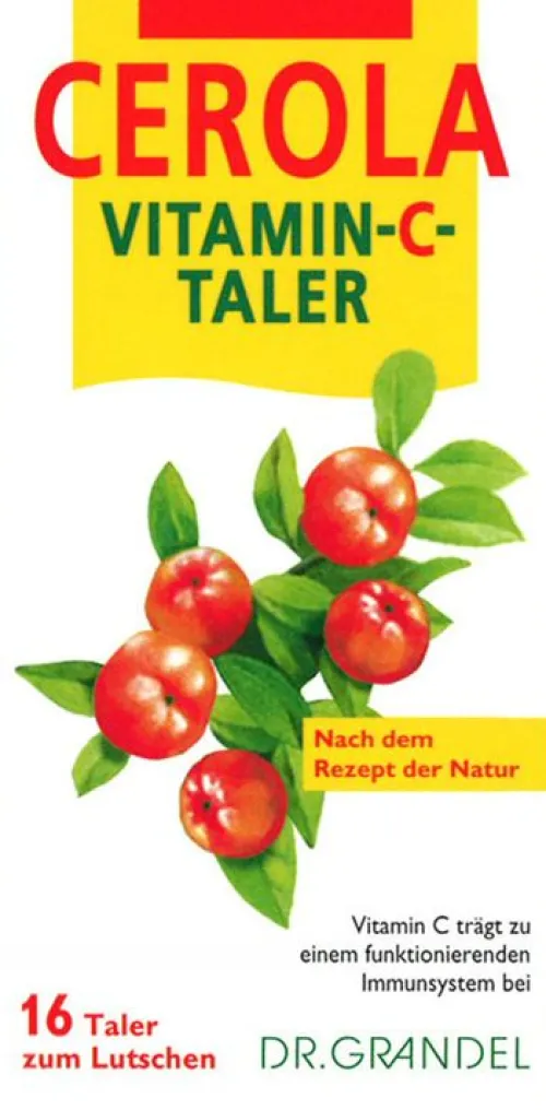 Acerola gedeiht in den tropischen Regionen Mittel- und Südamerikas und gilt als eine der Vitamin-C-reichsten Früchte der Erde. Ausgewählte Beeren- und Fruchtkonzentrate verleihen unseren CEROLA Vitamin-C-Talern ihren unnachahmlich aromatischen Wohlgeschmack.