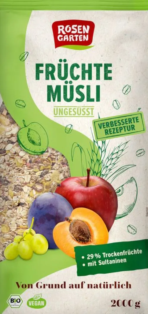 Früchte-Müsli ungesüßt, 2000g – Rosengarten