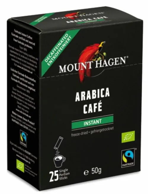 Der entkoffeinierte Bio Instant Kaffee von MOUNT HAGEN bietet vollen Geschmack, ganz ohne Koffein. Hergestellt aus hochwertigem, fair gehandeltem Arabica-Kaffee aus kontrolliert biologischem Anbau, überzeugt er mit einem milden und ausgewogenen Aroma.