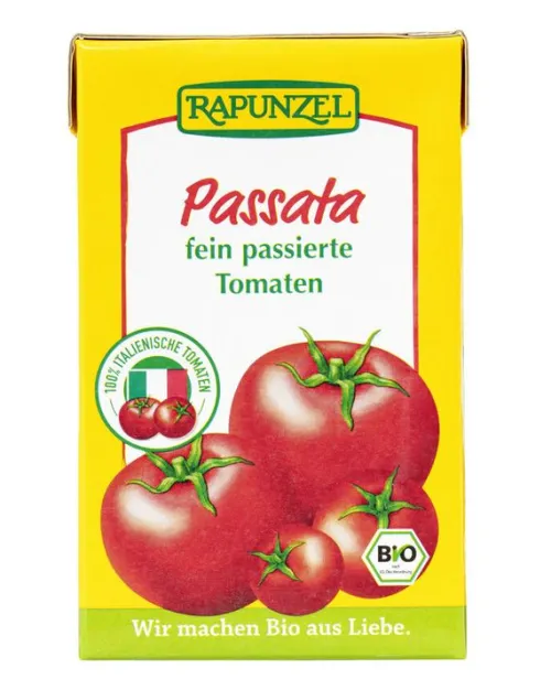 Die Passata im Tetra Pak von Rapunzel besteht aus sonnengereiften Bio-Tomaten, die direkt nach der Ernte schonend passiert werden. Sie kommt ganz ohne Zusatzstoffe aus und überzeugt durch ihren natürlichen, fruchtigen Geschmack. Hergestellt in Italien, steht diese Tomatenpassata für höchste Bio-Qualität und kurze Zutatenlisten – ideal für alle, die bewusst kochen.