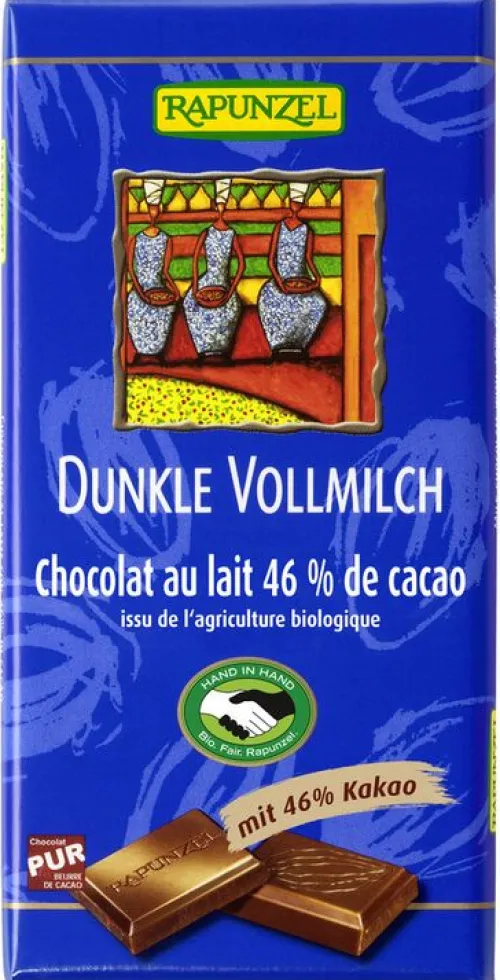 Vollmilch Schokolade 46% Kakao Dunkel HIH, 100g – Rapunzel