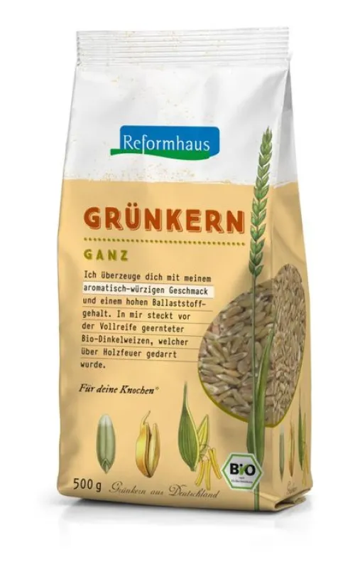 Grünkern zeichnet sich durch einen hohen Ballasttoffgehalt aus sowie einem hohen Gehalt an Magnesium, Eisen und Mangan.