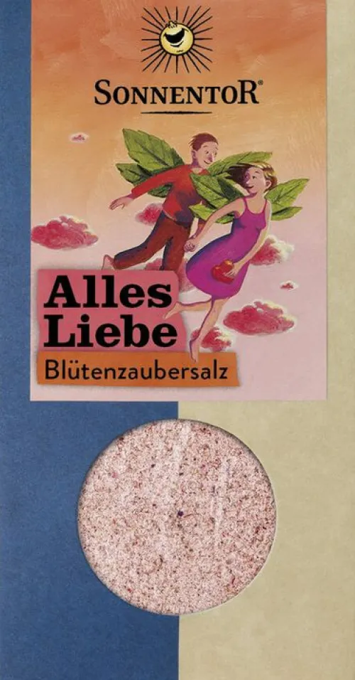 Das Alles Liebe Blütenzaubersalz von Sonnentor ist eine liebevoll abgestimmte Mischung aus feinem Meersalz und edlen Bio-Blüten. Die Kombination aus Rosenblüten, Kornblumen, rosa Pfeffer und fruchtigen Erdbeer- und Himbeerstücken verleiht Ihren Speisen eine harmonische, leicht süßlich-würzige Note.
