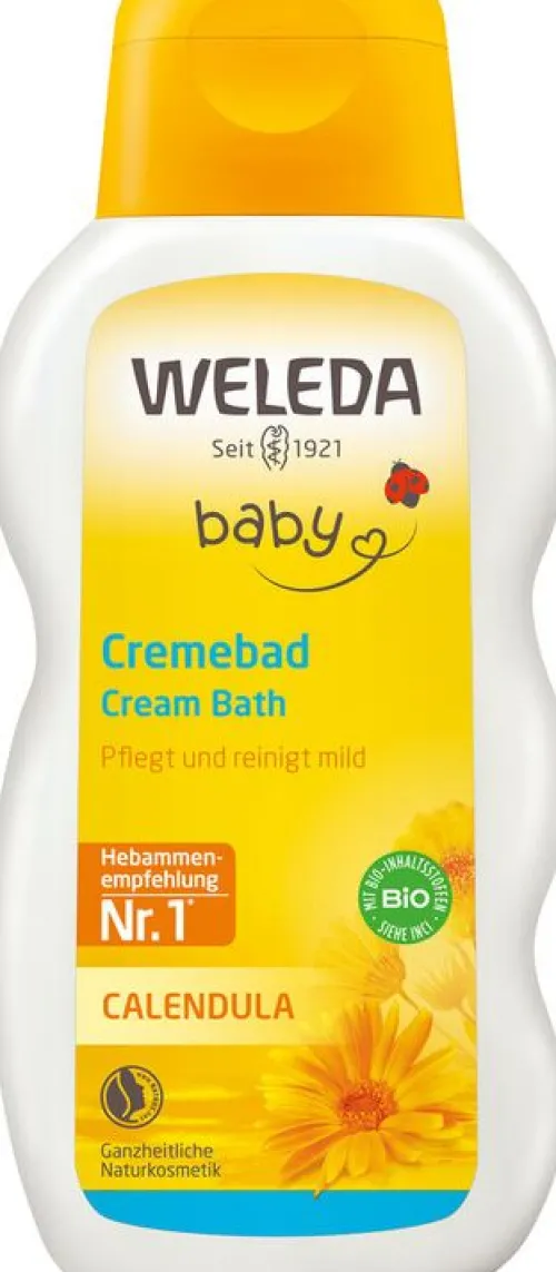 Das milde Weleda Calendula Cremebad reinigt besonders schonend und schützt die zarte Babyhaut vor dem Austrocknen.